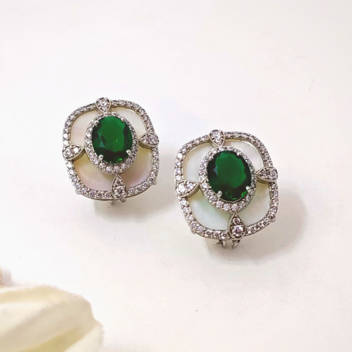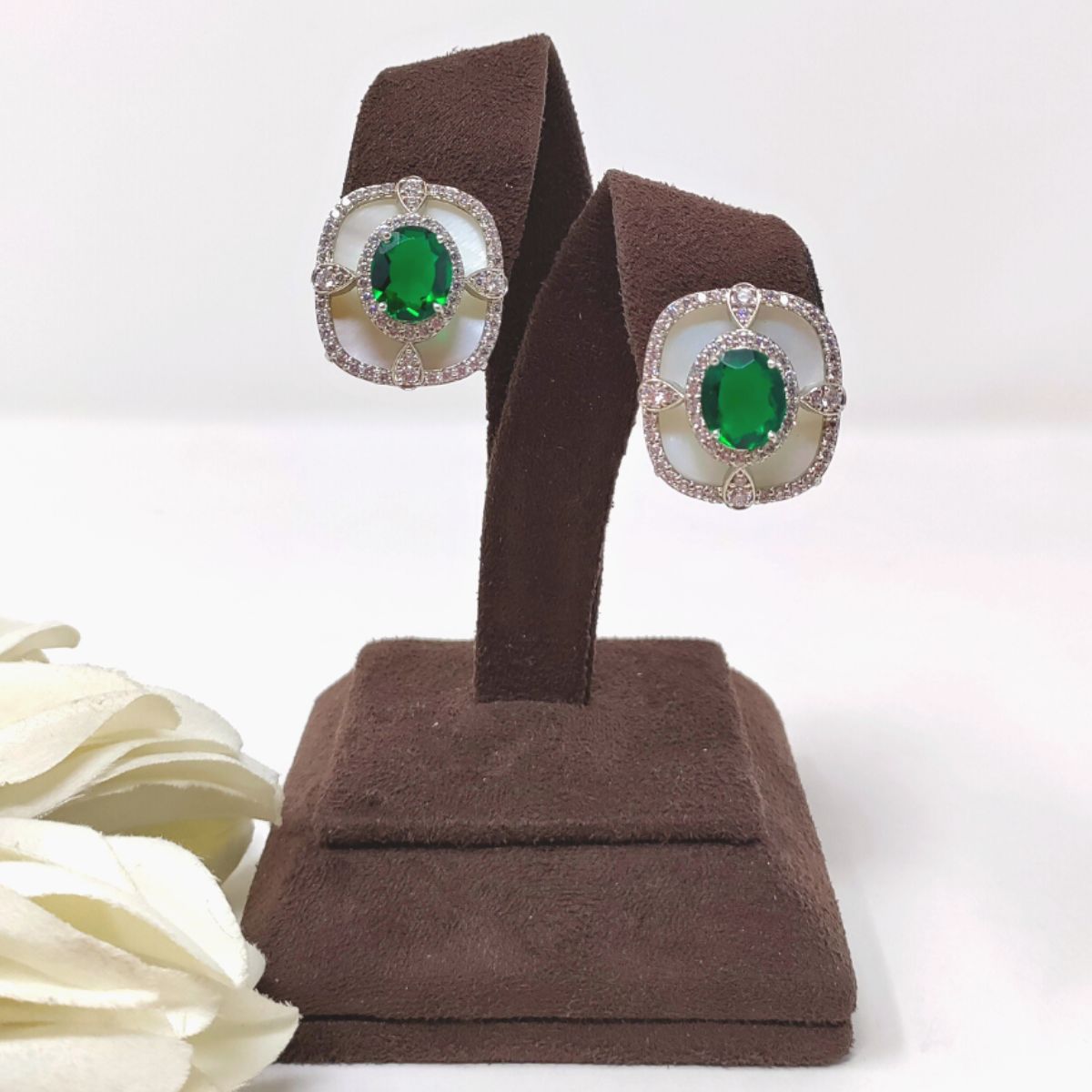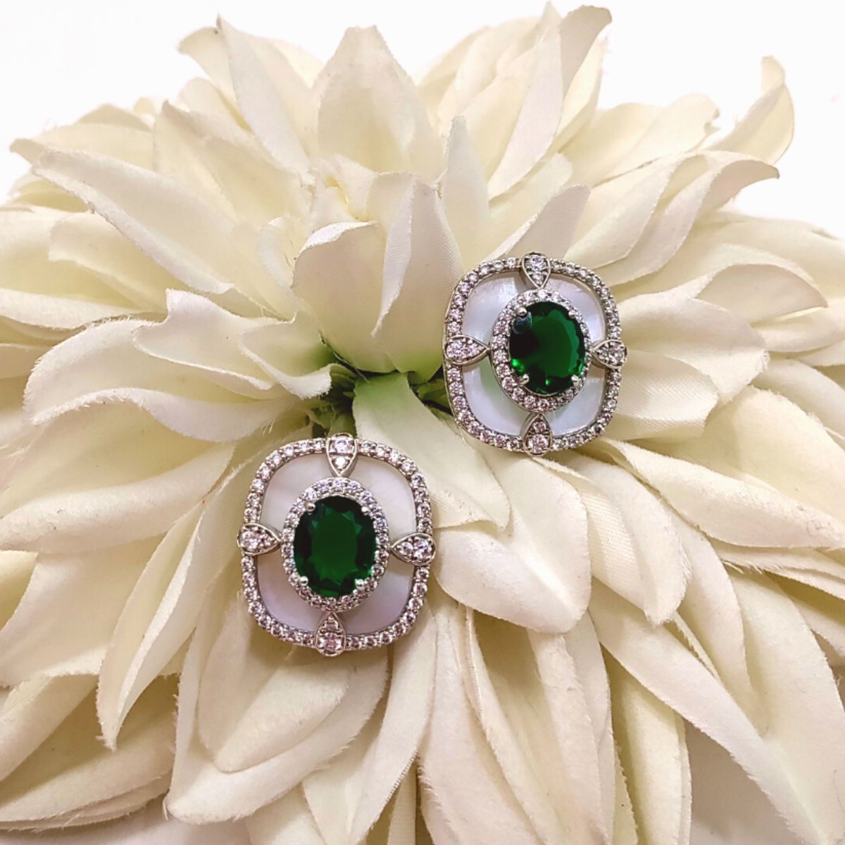 American Diamonds set in Mother of Pearl draws you towards the eternal depth of Green Crystal.